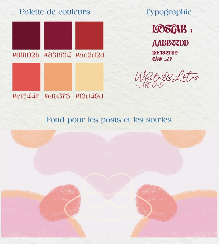 Je conçois des identités visuelles complètes : charte graphique professionnelle, choix typographiques, palettes de couleurs et déclinaisons pour le web et l’impression. Mon objectif : créer une identité qui reflète vos valeurs et vous démarque durablement.